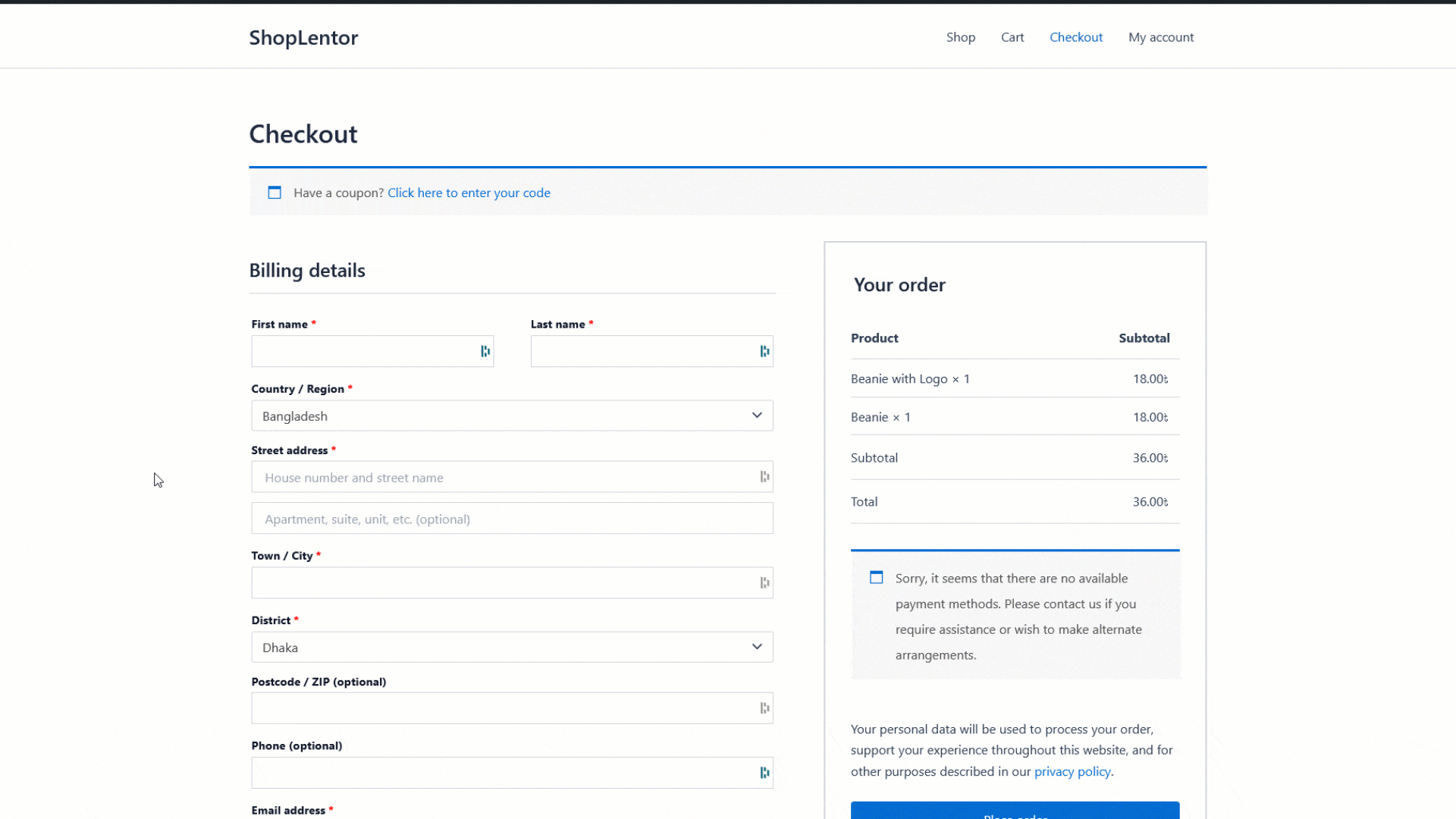 - Manage checkout fields.