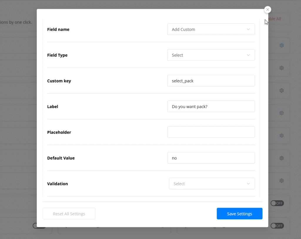 - Custom Key: Give a custom key. Make sure there is no gap between the words and that no special characters are used. Also, make sure that each field you create has a distinct name.