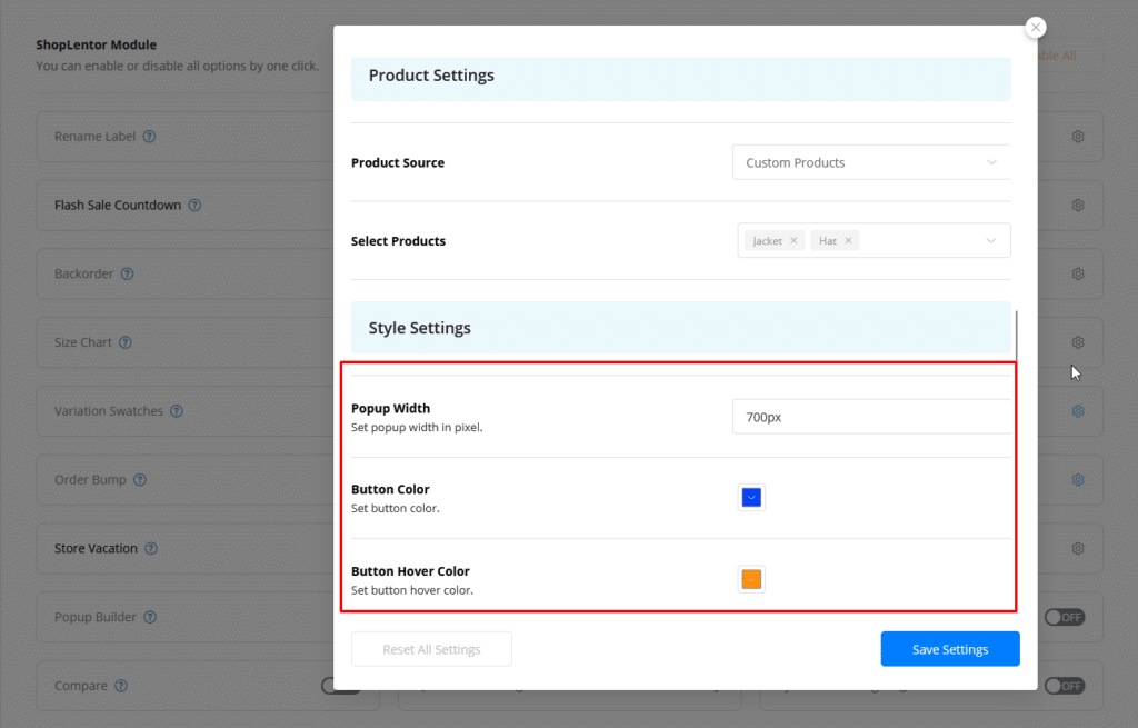 - Custom Products: Select specific products to feature. Multiple selections are supported.
