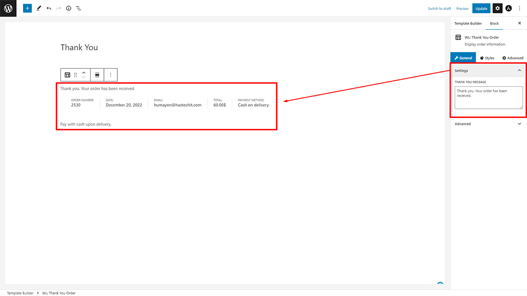 Step 3: How to customize the Thank You Order Block? #